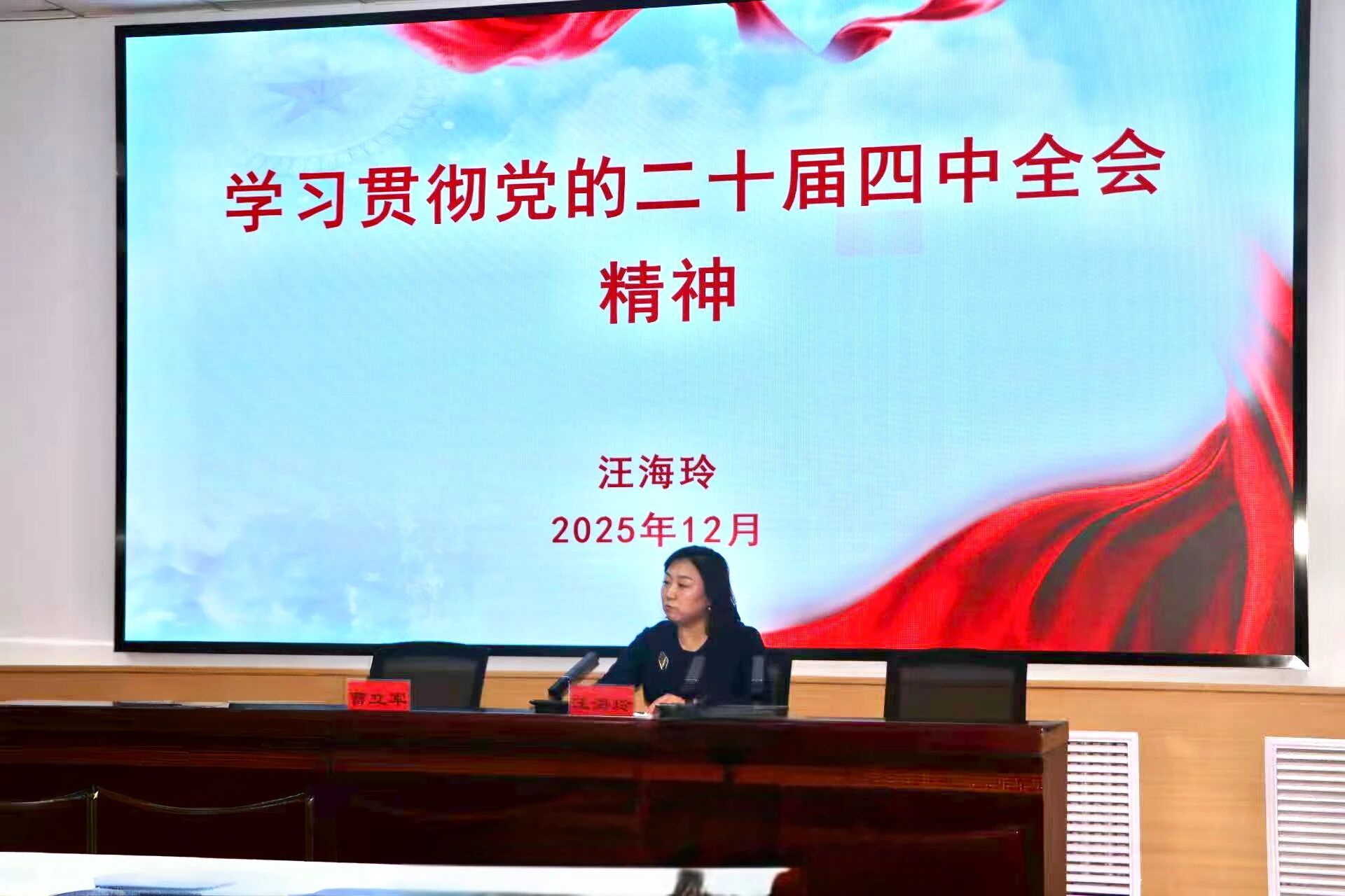 为深入学习贯彻党的二十届四中全会精神,深刻领会全会作出的重大战略部署,切实把全校师生的思想和行动统一到党中央决策部署上来,2025年12月18日,党的二十届四中全会精神宣讲报告会在外国语学院会议室举行,学院党委书记曹立军主持会议,学院领导班子、全体教职工参加。本次报告会特邀汪海玲老师担任主讲。
