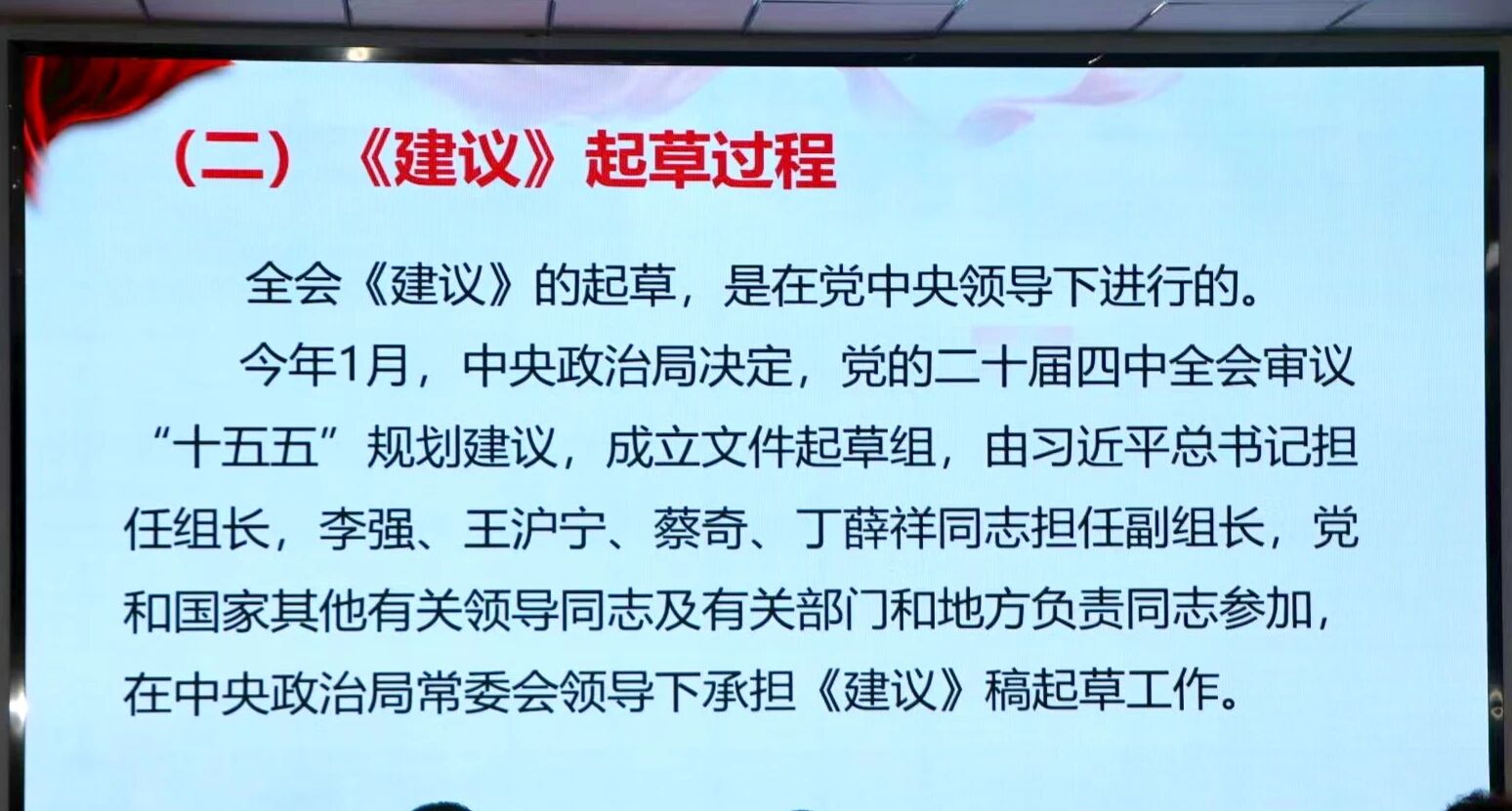 报告会重点围绕全会审议通过的《中共中央关于制定国民经济和社会发展第十五个五年规划的建议》(以下简称《建议》)展开深入解读。汪海玲老师在报告中强调,《建议》作为新时代以来党中央制定的第三个五年规划建议,以习近平新时代中国特色社会主义思想为指导,系统总结了“十四五”时期的重大成就,科学分析了“十五五”时期发展环境面临的深刻复杂变化,对未来五年我国经济社会发展目标任务与战略部署进行了顶层设计和系统谋划。《建议》是乘势而上、接续推进中国式现代化建设的又一次总动员、总部署,是指导“十五五”时期发展的纲领性文件,必将对党和国家事业发展产生重大而深远的影响。