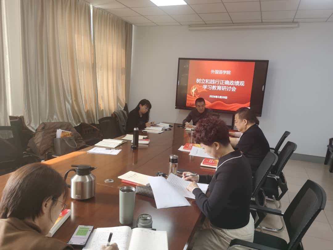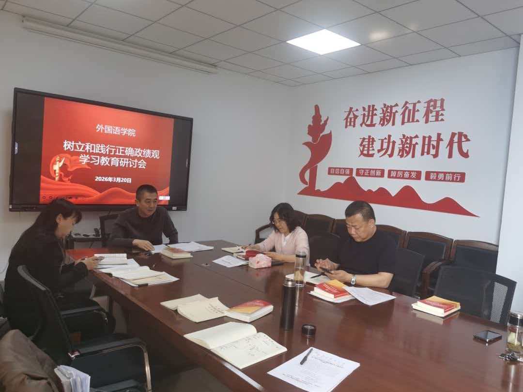 2026年3月20日上午,外国语学院党委召开树立和践行正确政绩观专题研讨会,全体党委委员参会,会议由学院党委书记曹立军主持,聚焦党建与外语教学深度融合,推动正确政绩观落地生根。