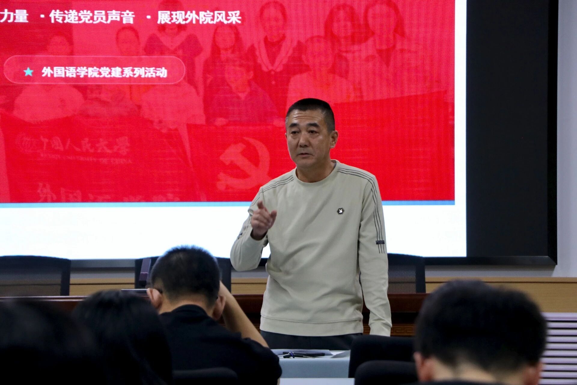 最后,曹立军书记对以上三位老师的分享做出了总结。他说到,外语院“党员说”这一新形式的党日活动,目的是想通过每位党员的亲自讲述,用英雄、模范、先进的精神激励党员,用党史、军史等史料武装党员。通过每位党员的分享,不仅能拓宽党员们的眼界,使党日活动更加生动,更加有实效,这样有意义的活动将会持续下去,用心打造成一个外语院的精品党日活动。