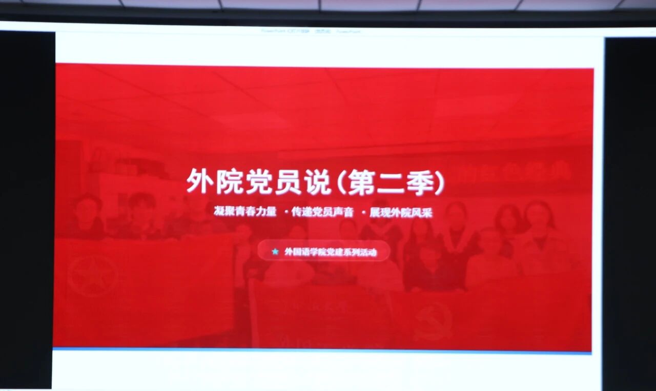 2025年10月16日下午,为深入学习贯彻习近平新时代中国特色社会主义思想,提升外语院党员的政治素养,激励更多党员发奋图强,外国语学院党委组织召开了一次精品党日活动:外语院“党员说”(第二季),会议由党委组织委员张婷主持。