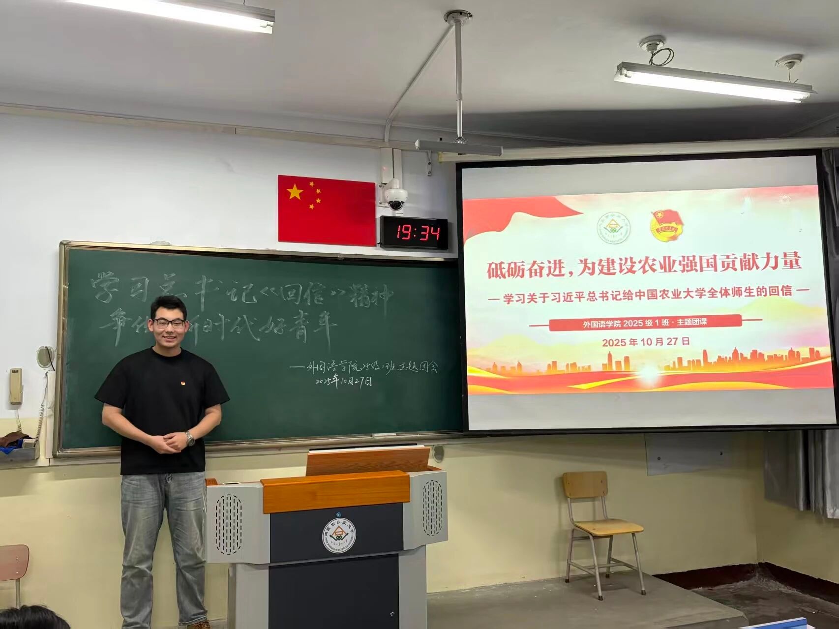 为深入学习贯彻习近平总书记给中国农业大学建校120周年重要回信精神,引导广大团员青年深刻领会回信内涵,坚定“强农报国”志向,将青春理想融入乡村振兴与农业发展事业,外国语学院各年级团支部于2025年10月27日组织开展了该主题团日活动。活动通过多形式、多层次的学习与交流,推动回信精神入脑入心,切实激发团员青年的责任担当与使命意识。