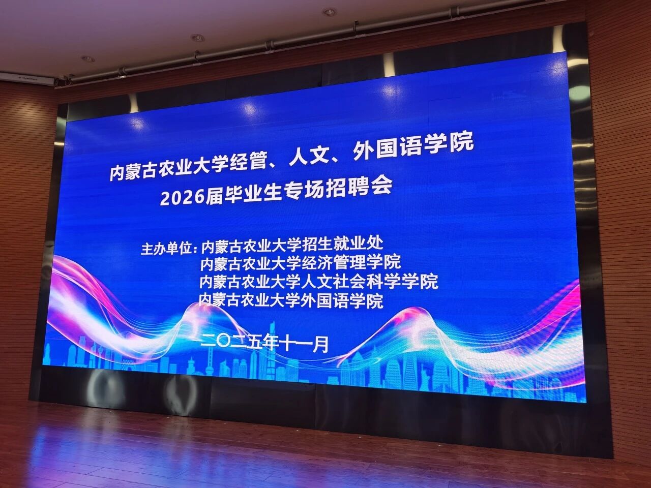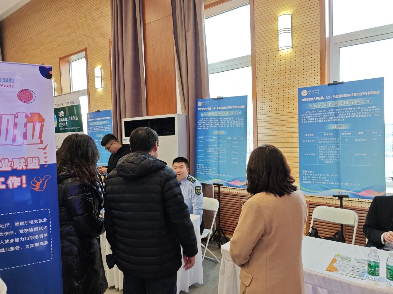 为积极应对当前就业形势,搭建企业与高校毕业生的双向对接平台,实现人才供给与岗位需求的精准匹配,助力2026届毕业生顺利就业、高质量就业,11月20日,由内蒙古农业大学招生就业处牵头,人文社会科学学院、经济管理学院、外国语学院联合举办的2026届毕业生专场招聘会,在新校区经济管理学院一楼会议室隆重举行。