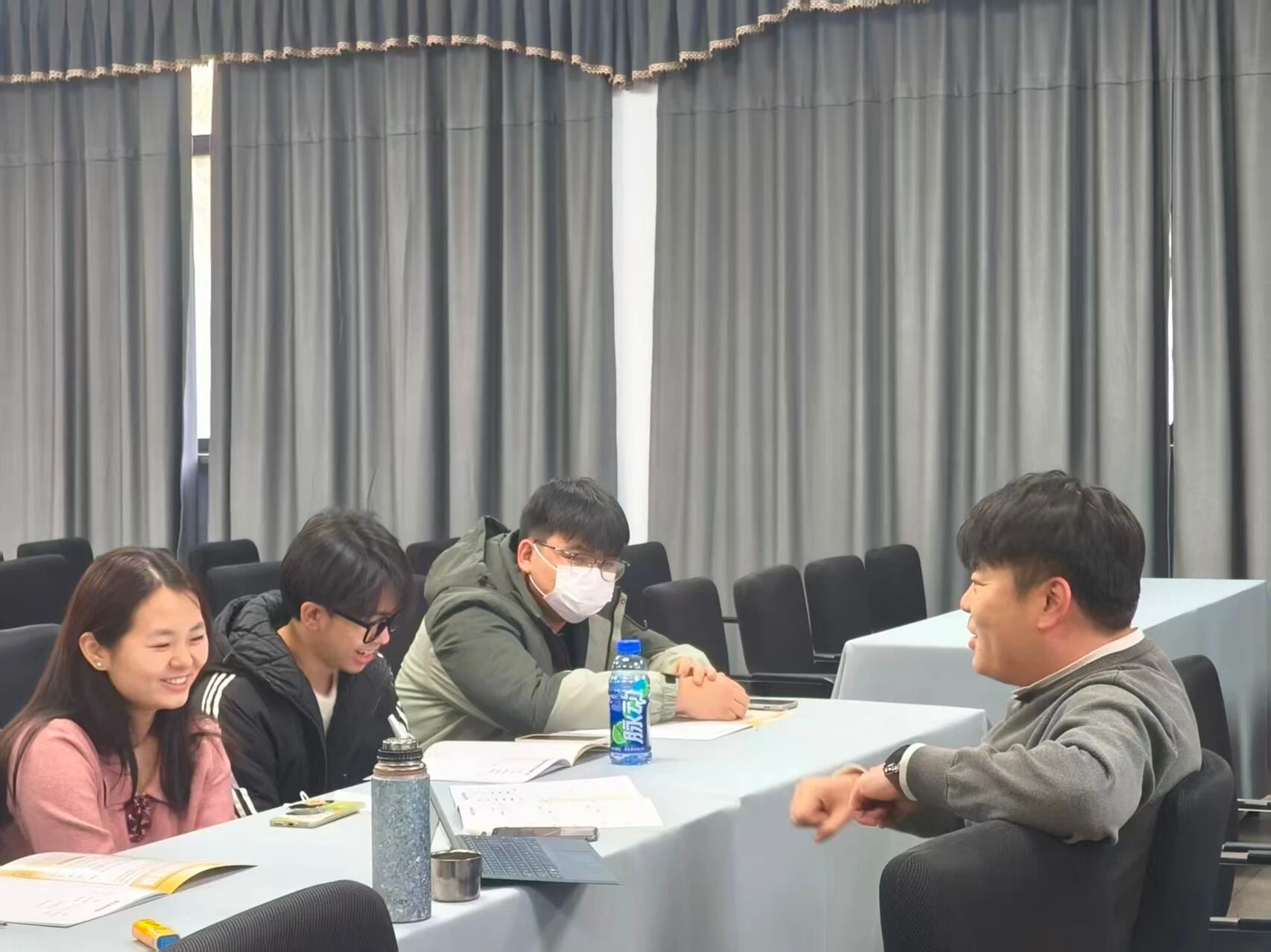 活动现场气氛热烈。周老师凭借其丰富的考研指导经验,首先为同学们深入剖析了当前全国考研的宏观形势与外语类专业学生的独特优势。随后,活动进入“一对一”深度交流环节。周老师耐心倾听每位同学的目标院校、专业兴趣与学业困惑,并据此提供了极具针对性的院校选择建议、全程复习规划以及公共课与专业课的备考策略。