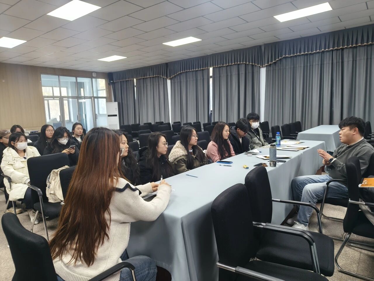 为扎实推进毕业生考研指导与服务工作,帮助学生明确备考方向、科学规划未来,11月27日下午三点,我院于学院二楼会议室成功举办了面向2027届毕业生的“考研一对一规划”指导活动。本次活动特邀呼和浩特启航考研资深规划师周老师担任主讲嘉宾,为学子们提供个性化的备考咨询与策略支持。