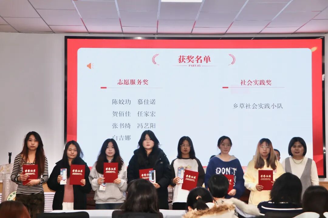学院团委书记贾文涛老师为“志愿服务奖”与“社会实践奖”获得者颁奖。他们以奉献温暖社会,用脚步丈量责任,生动践行了志愿精神,将青春华章写在祖国大地。
