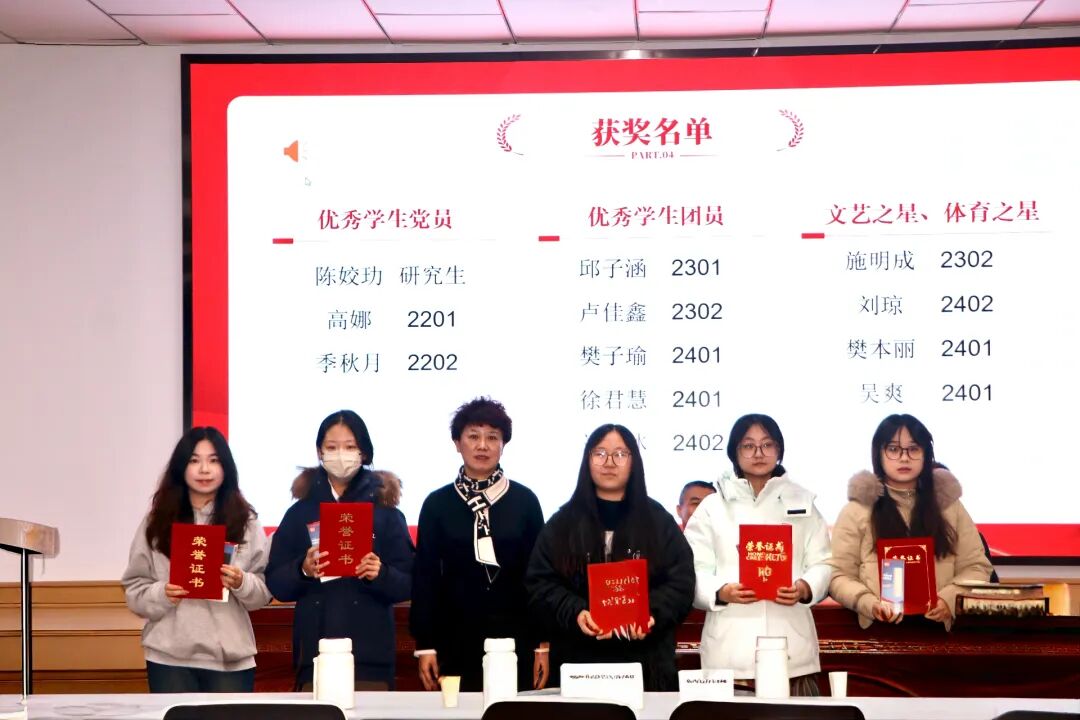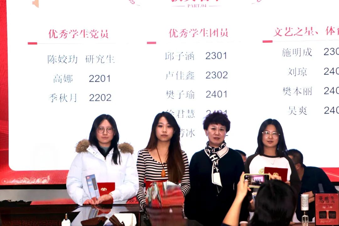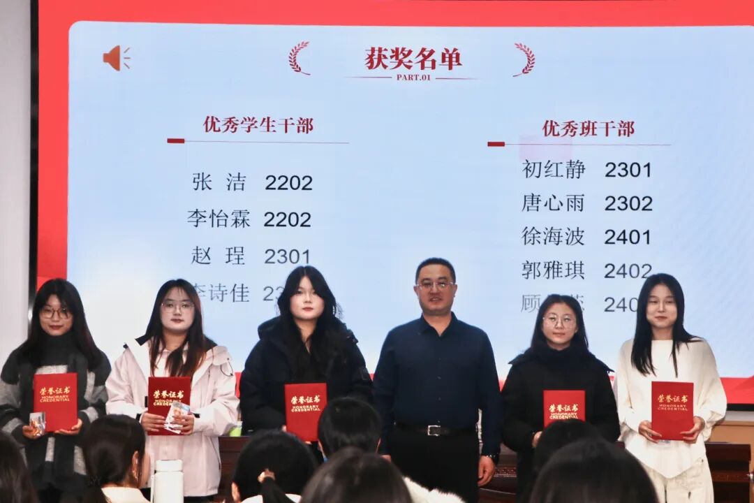 学院副院长任云岚为“优秀学生党员”与“优秀学生团员”颁奖,她们坚定理想信念,严守纪律规矩,在学习、工作和生活中处处发挥先锋模范作用,展现了新时代青年坚定的政治品格与先进本色。任院长同时为“文艺之星”与“体育之星”颁奖。前者以艺术点亮校园,提升文化品位;后者在赛场挥洒汗水,诠释拼搏精神。