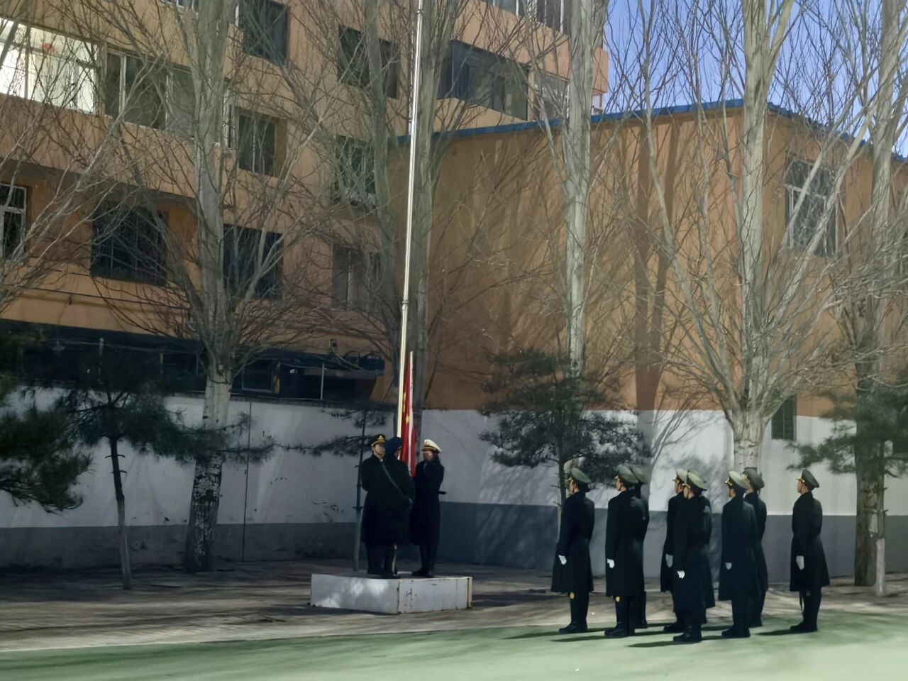 清晨气温较低,但师生们精神饱满,提前在操场指定区域整齐列队。仪式准时开始,由学生组成的国旗护卫队着装整齐、步伐有力,护送五星红旗走向升旗台。在庄严的《义勇军进行曲》中,全体师生肃立行注目礼,凝视国旗冉冉升起。升旗仪式结束后,优秀学生代表进行了国旗下的演讲。