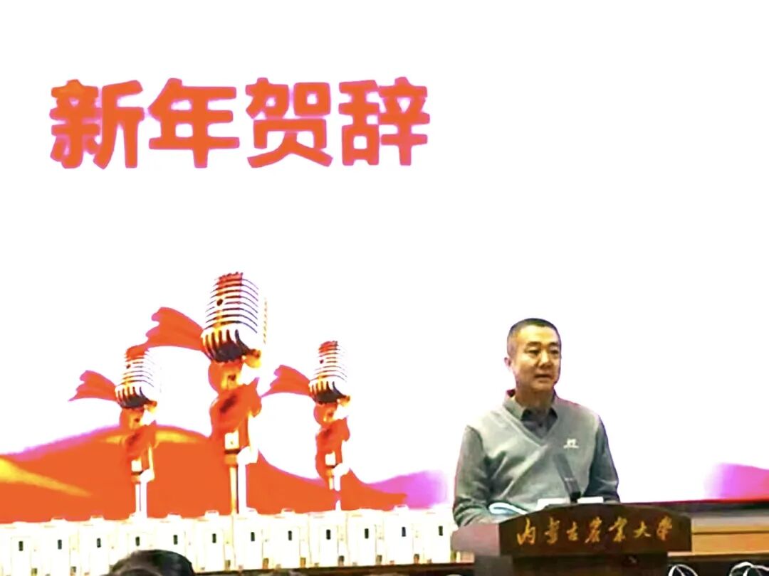 大会伊始,曹立军书记发表新年致辞。他代表学院向全体师生致以诚挚的节日问候和祝福,回顾了过去一年学院师生共同努力取得的优异成绩,并号召学院师生在新的一年共同谱写推动高质量发展的精彩篇章。